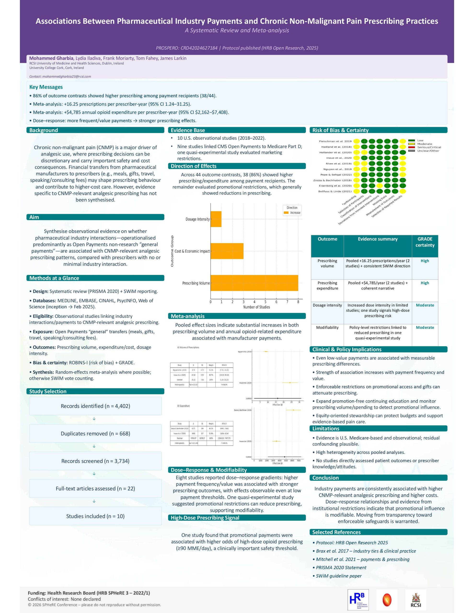Mohammed Gharbia – Associations Between Pharmaceutical Industry Interactions with Physicians and Chronic NonMalignant Pain Management Prescribing Practices: A Systematic Review