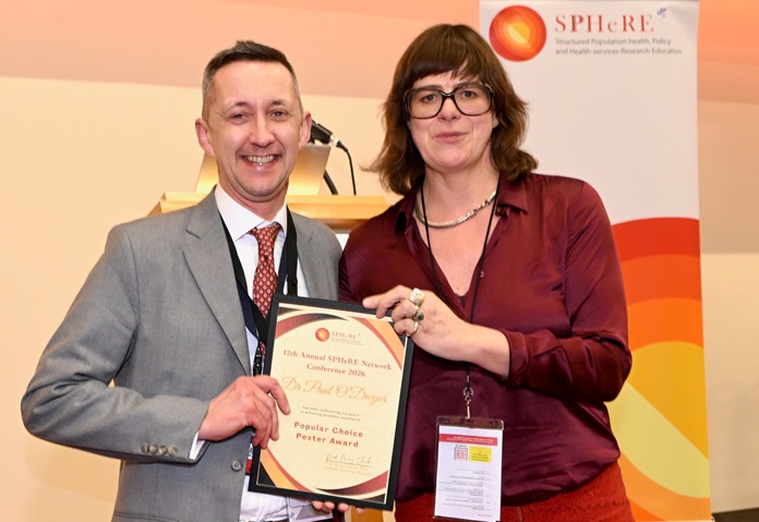 Both Emily O’Connor and Cheyenne Downey won the prestigious SPHeRE 11th Annual Conference 2025 Poster Prize for their posters titled “Maternity staff opinions on perinatal death reviews: focusing on parent involvement and changes to the system” and “Perceived Barriers Facilitators to Designing and Implementing a Financial Incentive Intervention for Stop Smoking in Ireland”